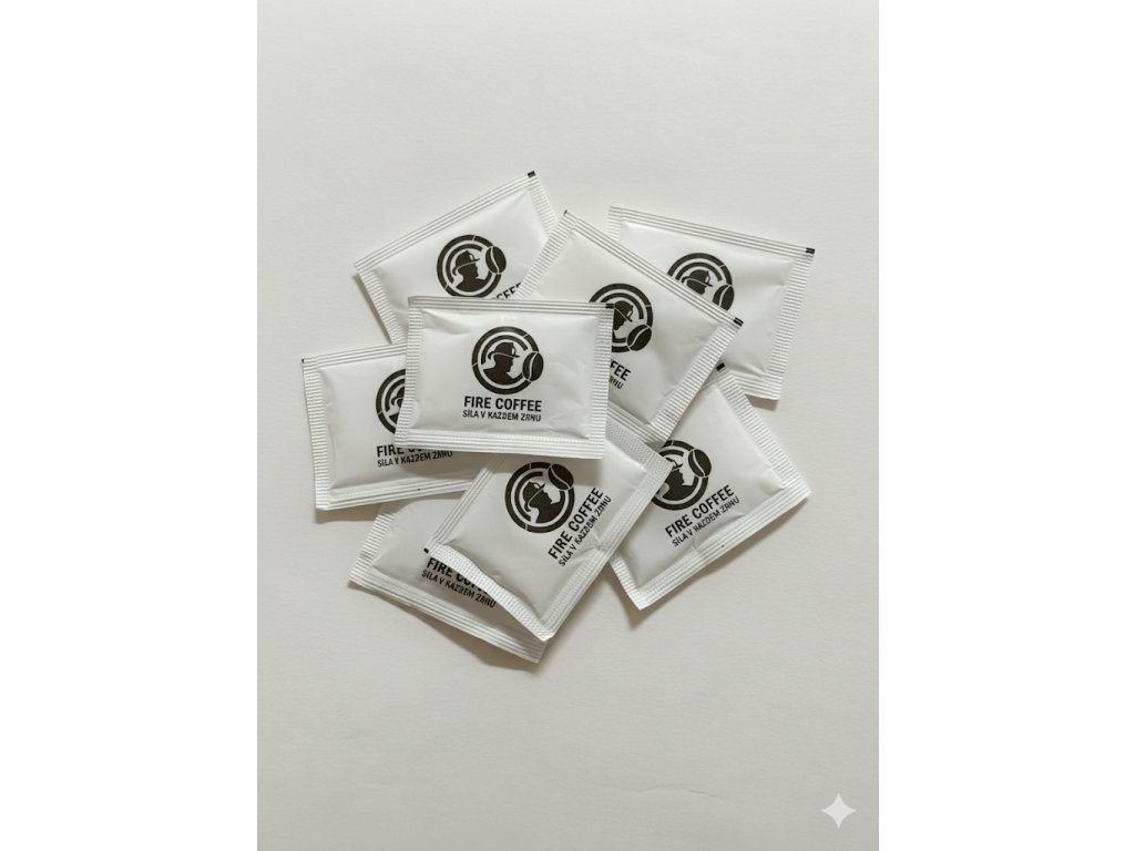 Balení obsahuje 50 hygienicky uzavřených porcí, které se snadno dávkují a udržují čistotu při servírování. Stylový design s logem FIRE COFFEE.